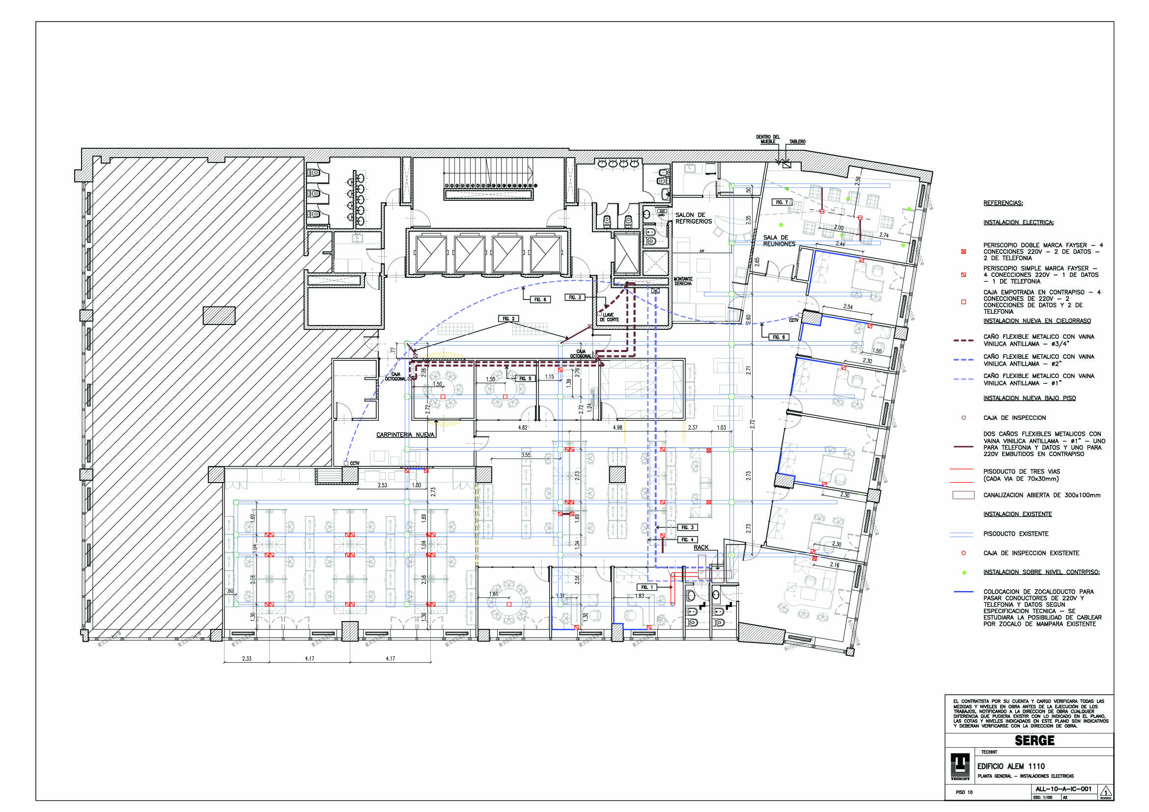 Durante mi pertencencia al equipo CYARQ trabajé en el diseño de lay out, planos de estado actual, detalles constructivos, etc, de varios edificios de oficinas. Aquí se muestran planos de los de la torre ubicada en Alem 1110, perteneciente al grupo Techint.
