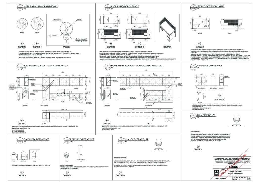 - Ejemplos de planos de distribución de oficinas e instalaciones y detalles del mobiliario de oficina que redacté:**: