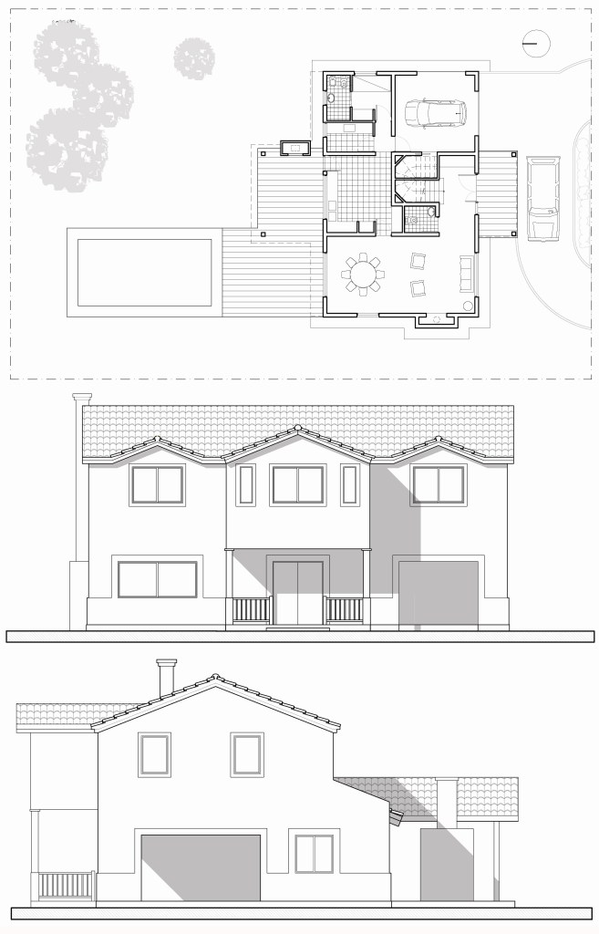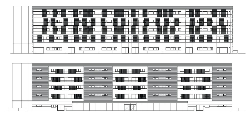- Edificio de viviendas públicas, Botafoc de Vendrell, España, diseño alternativo. 56 apartamentos, 90 plazas de aparcamiento, 2 tiendas. Diseñé los planos y las fachadas.