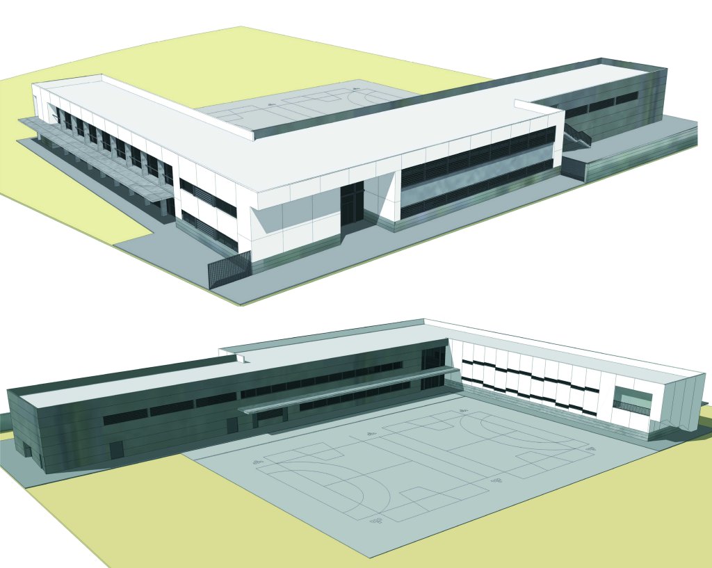 - Escuela Pública en Barcelona, España. Hice los renderizados en 3D de Sketchup y los diseños de la fachada.