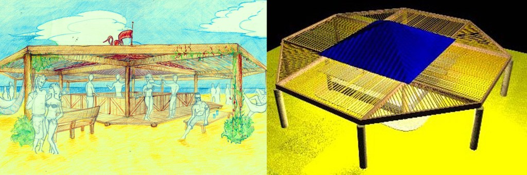 - Competencia de diseño de un bar en la playa. Renderizados en 3D y planos finales.