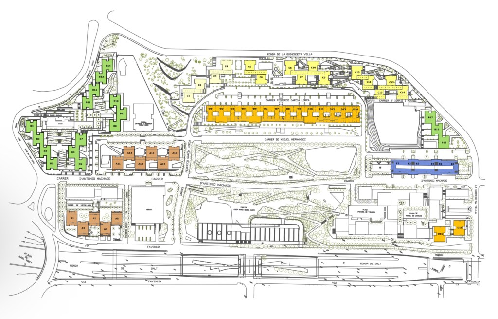 - Concurso de Diseño Urbano: renovación del barrio de Canyelles en Barcelona, rehabilitando las fachadas existentes con nuevos materiales y colores.**